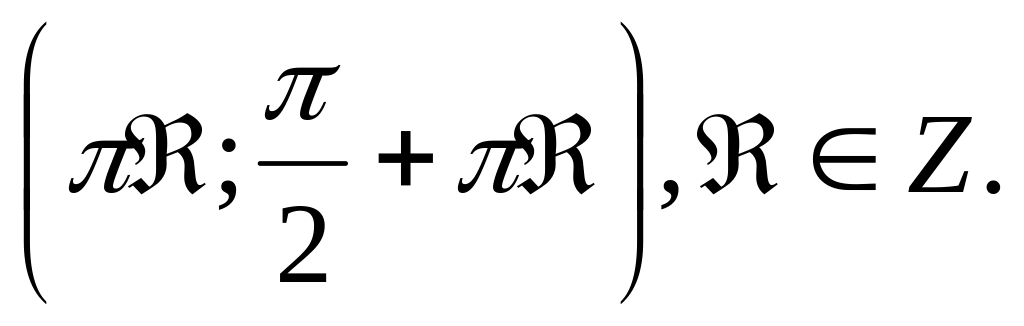 Функция y=ctg x принимает отрицательные значения на каждом из промежутков