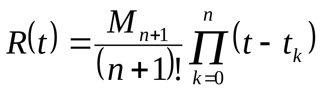 де x(n+1)(ξ) – значення (n + 1)-ої похідної повідомлення x(t), взятої в деякій точці ξ, яка лежить усередині інтервалу tn – t0. Оскільки положення точки ξ невідоме, для оцінки використовують модуль максимуму похідної Мn+1 на заданому інтервалі. Тоді