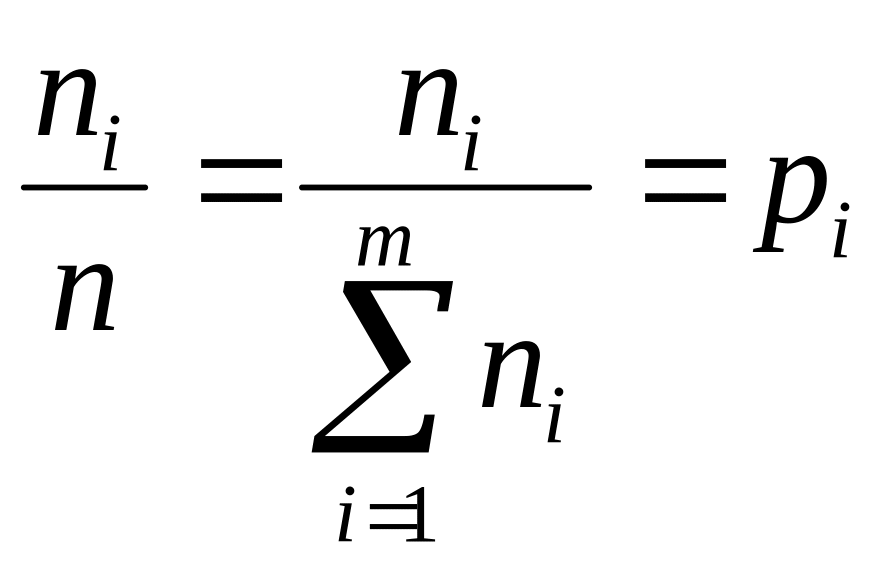 Розглянемо повідомлення, що складаються з n елементів, кожен з яких є незалежним та вибирається з алфавіту, що містить m літер, з ймовірностями вибору елементів p1, p2,..., pi,..., pm відповідно. Уявімо, що в деяке повідомлення увійшло n1 елементів x1 алфавіту, n2 елементів x2 і т. д. Таке повідомлення характеризує табл. 1.2.