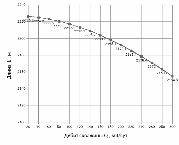 Рисунок 2.7 – График зависимости дебита от длины НКТ