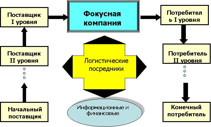 По сути, цепи поставок – это последовательности поставщиков и потребителей: каждый потребитель затем становится поставщиком для следующих (в нижнем по потоку звене цепи) видов деятельности или функций, и так продолжается до тех пор, пока готовый продукт не поступит к конечному пользователю. Поэтому можно говорить о своеобразной сетевой структуре цепей поставок в которой каждая компания (организация или отдельное структурное подразделение) поставляют друг другу материально-товарную продукцию или услуги, добавляя определенную стоимость к товару.