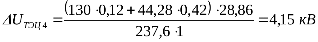 Рассмотрим отказ одной цепи линии ТЭЦ-4. Падание напряжения в линиях подсчитываем с учётом того, что по условию задания напряжения на шинах ПС при тяжёлых авариях в сети равно .