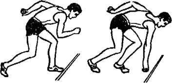 Словесные команды «НА СТАРТ» и «ВНИМАНИЕ» можно заменить звуковым сигналом, подаваемым свистком. По команде «НА СТАРТ»военнослужащий из исходного положения (3 – 5 м от линии старта) подходит к линии старта. Сильнейшая нога – у линии старта, другая – на 1 – 1 ,5 ступни сзади. Стопы ног параллельны, туловище прямо, руки опущены. По команде «ВНИМАНИЕ» наклониться вперед, центр тяжести перенести на впередистоящую ногу. Руку, противоположную впереди стоящей ноге, чуть подать вперед. Другая рука, согнутая в локте, отводится назад (кисть – сбоку туловища).