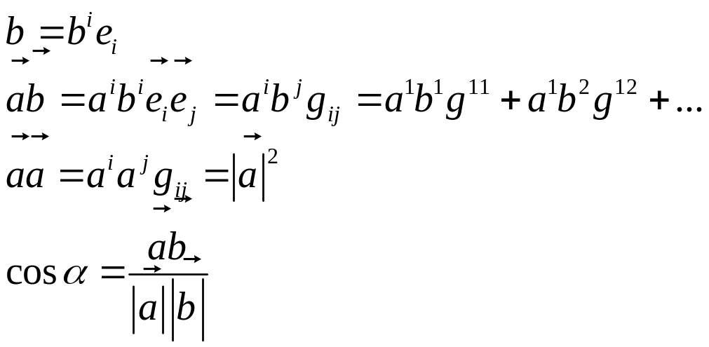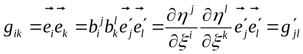 При преобразовании координат компоненты метрического тензора преобразуются как произведение координат. Скалярное произведение векторов, записанное с использованием компонент метрического тензора.