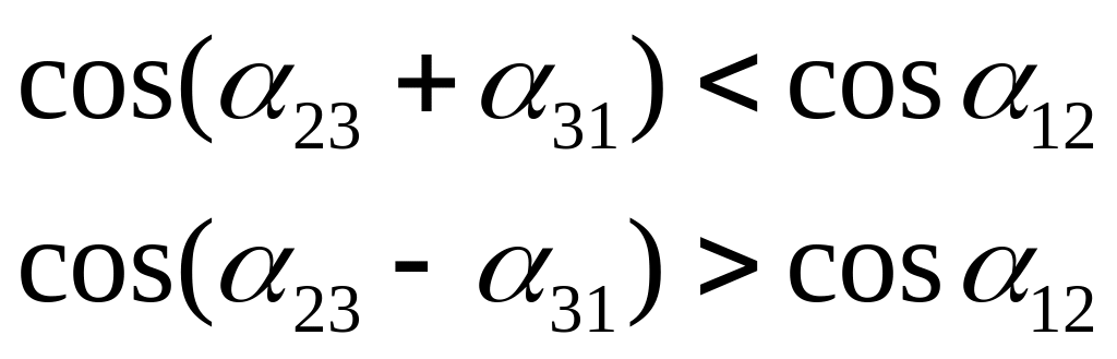 Для того, чтобы из трёх положительных углов можно было построить трёхгранник, необходимо, чтобы любые 2 угла, каждый из которых < 180 в сумме были бы больше третьего, а их разность была меньше третьего.