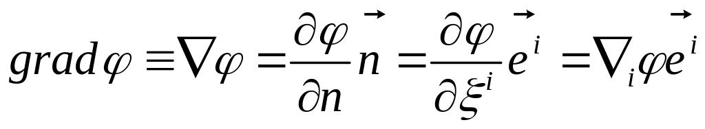 Введём в рассмотрение вектор, направленный по нормали к поверхности постоянных значений функций, в сторону её возростания и имеющий величину, равную произведению функции на скаляр, назовём этот вектор градиентом скаляра.