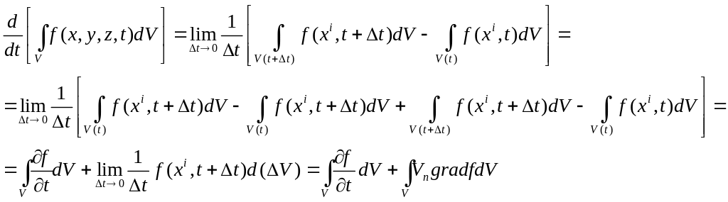 Формула дифференцирования по времени. Интегралы, взятые по подвижному объёму.