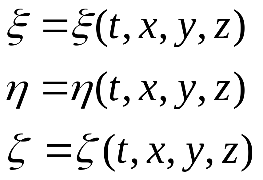 - координаты выбранной точки пространства, когда говорят о времени, то имеют в виду время проведения точки в пространстве.