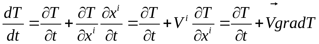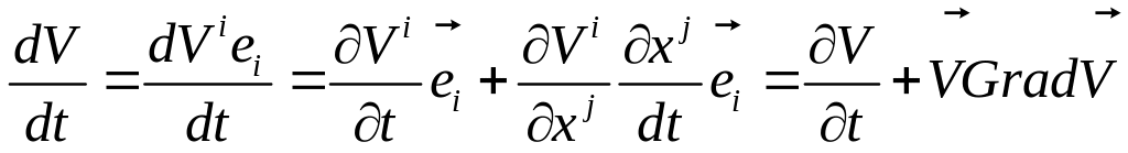 Полная производная по времени от величины, заданной в переменных Эйлера.