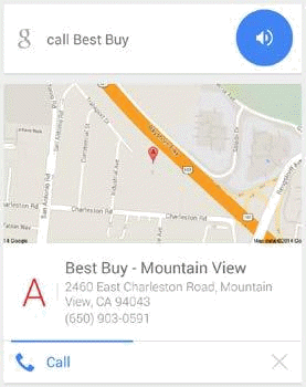 Result: In this Device Action Result Block, the query has initiated a call to the nearest Best Buy location.