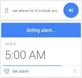 Result: In this result block, the query has initiated the alarm on the phone to be set for 5:00 AM.