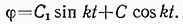 Это дифференциальное уравнение совпадает по виду с дифференциальным уравнением свободных прямолинейных колебаний точки и его общим решением по аналогии с равенством (68) из § 94 будет