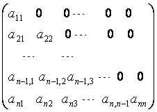 Запишем общие формулы метода Гаусса. Пусть проведено исключение к элементов из (k-1)-го столбца. Тогда останутся строки с ненулевыми элементами ниже главной диагонали.
