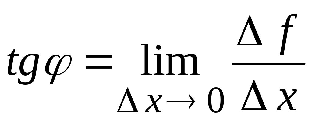 Из рассмотренных выше задач следует, что с точки зрения механики производная определяет мгновенную скорость движения, а с геометрической точки зрения производная функции равна тангенсу угла наклона касательной к положительному направлению оси абсцисс в заданной точке, в которой вычисляется значение производной.