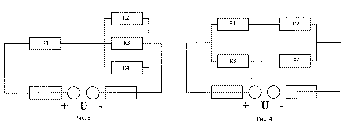 Цепь постоянного тока со смешанным соединением состоит из четырех резисторов. В зависимости от варианта заданы: схема цепи (по номеру рисунка); сопротивление резисторов R1, Ом. R2, Ом, R3, Ом, R4, Ом; напряжение U,В; ток I, А; мощность P, Вт всей цепи. Определить: