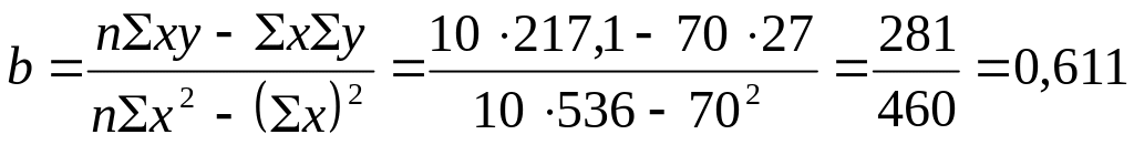 Оскільки Fрозр=29,2 набагато більше критичного Fтабл=5,32, що підтверджує істотність кореляційного зв’язку, то рівняння регресії