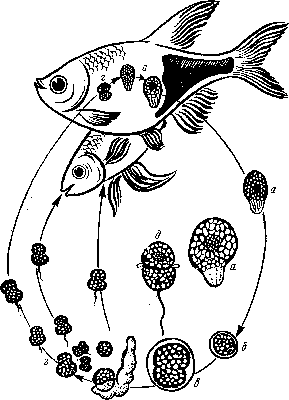 Вопрос 2. Опишите жизненный цикл паразита рыб, карта 1.01