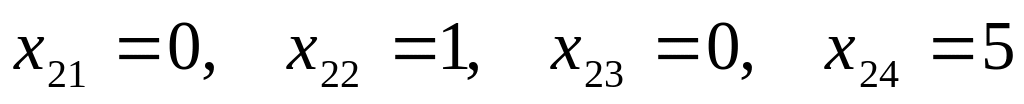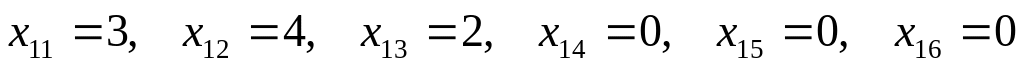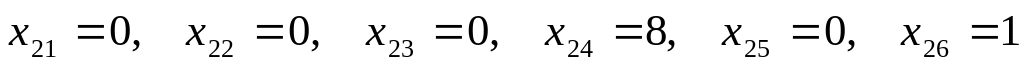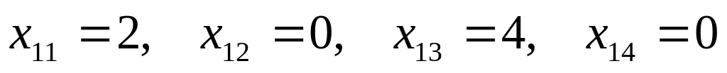 Пример 2. Решить задачу вида (2), положив m=4, n=6, c11=1, c12=0, c13=c14=c15=c16=c21=c22=2, c23=0, c24=-4, c25=3, c26=-4, c31=-2, c32=c33=1, c34=0, c35=-3, c36=c41=c42=4, c43=0, c44=-3, с45=0, c46=-3, a1=a2=9, a3=a4=3, b1=b2=4, b3=5, b4=8, b5=2, b6=1.