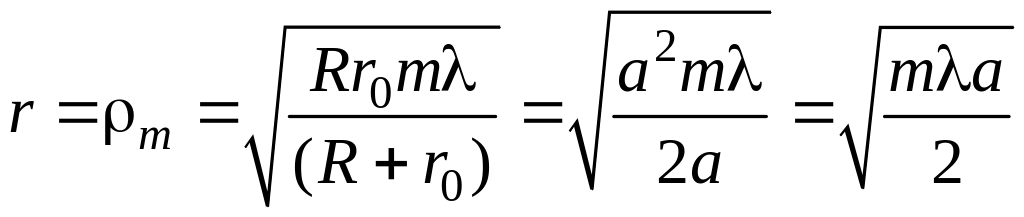 Радиус отверстия будет соответствовать радиусу -й зоны Френеля