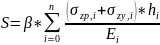 S = β * {[((σzp,0 + σzp,1)/2) – ((σzy,0 + σzy,1)/2) + ((σzp,1 + σzp,2)/2) – ((σzy,1 + σzy,2)/2)