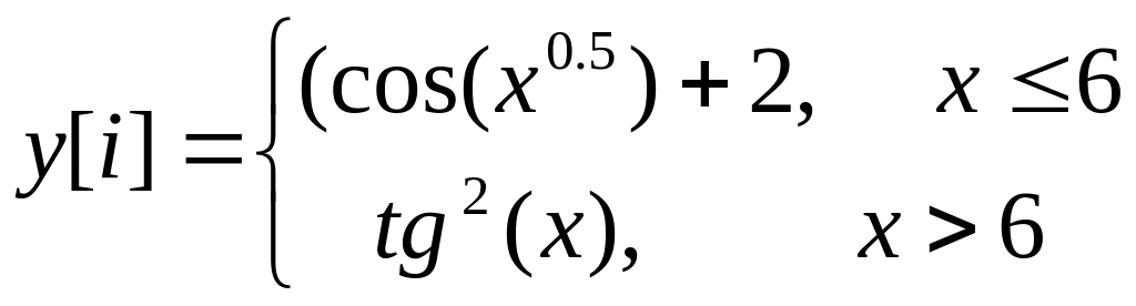 1.Для 10 значений x из диапазона 5..8 заполнить и распечатать массив y[i]