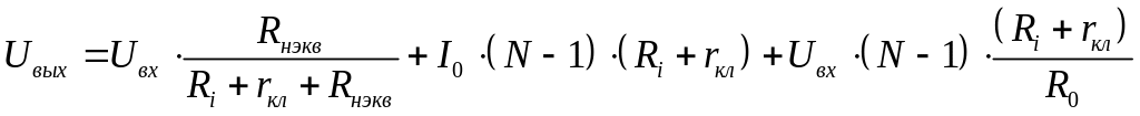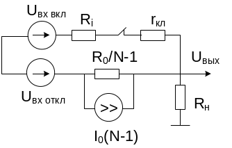 Первое слагаемое – составляющая полезного сигнала. Коэффициент при Uвых – коэффициент передачи открытого ключевого устройства. Если Ri, rкл и R0 имеют номинальные значения, получим номинальное значение коэффициента передачи (градуировочное).