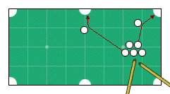 подкатывается к угловой лузе