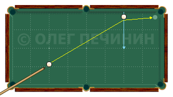После соударения биток от длинного борта выходит к угловой лузе. 25 ударов