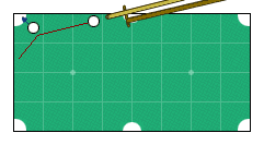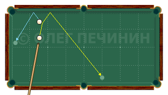 После соударения чужой от длинного борта встает на короткий, а свой от борта перекатывается через середину. 25 ударов
