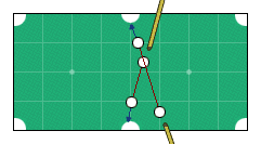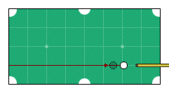 После соударения чужой перекатывается через середину и останавливается у короткого борта. 25 ударов