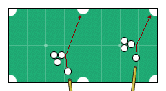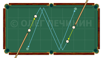 После соударения свой шар от двух бортов перекатывается через середину, а чужой встает на короткий борт. 25 ударов