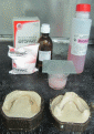Для получения разъёмной гипсовой пресс – формы, в которой происходит полимеризация базисной пластмассы «Фторакс», производят два замешивания гипса с необходимым интервалом времени между ними. Таким образом, полученная гипсовая пресс – форма состоит из двух частей, что позволяет после удаления воскового базиса раскрыть кювету (гипсовую пресс – форму), провести визуальную оценку качества удаления воска и в последующем заполнении (формовку) заранее приготовленной полимер – мономерной композицией.