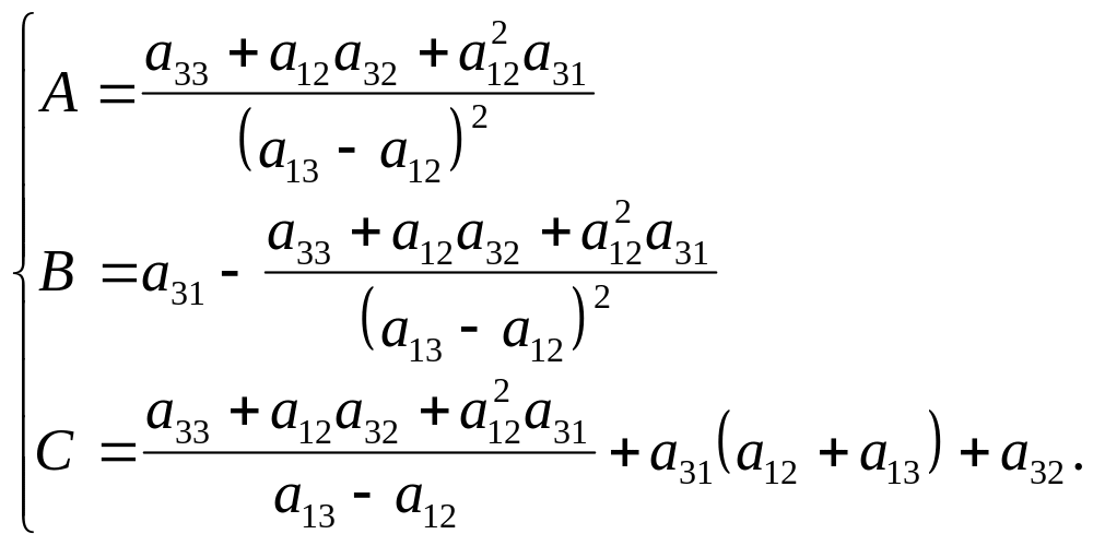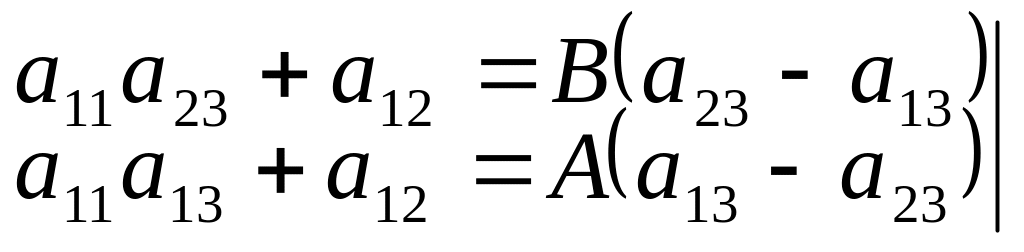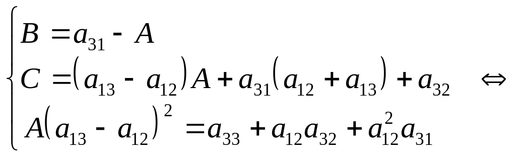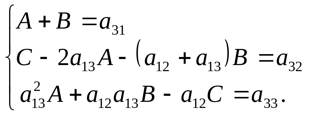 Выразим из первого уравнения системы В через А, а из второго – С через А и В. Подставим полученные выражения в третье уравнение системы, из которого найдём А: