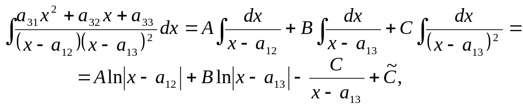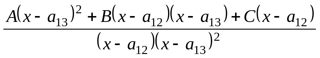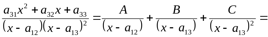 Многочлены тождественно равны, если равны коэффициенты при одинаковых степенях х. Приравняв коэффициенты при одинаковых степенях х многочленов слева и справа, получим систему уравнений относительно неизвестных коэффициентов А, В и С:
