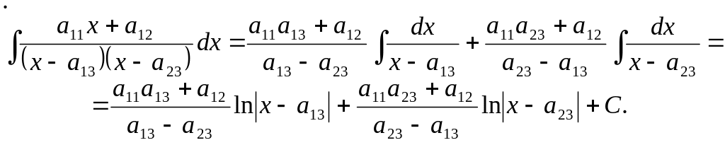 Вернёмся к исходному интегралу, преобразуя подынтегральную функцию в сумму простых дробей, используя свойство линейности (2) и применяя формулу (4) для вычисления интегралов от простых дробей: