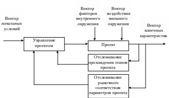 На рисунке 3 представлена функциональная схема проекта в терминах замкнутых систем управления. Схема подчеркивает важность обратной связи по текущим параметрам проекта и текущим рыночным потребностям.