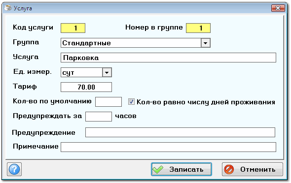 Довідник "Послуги" використовується для вибору послуг та розрахунку їх вартості. У програмі можливе використання нічим не обмеженого списку додаткових послуг. Для зручності пошуку всі види послуг можна розділити на кілька груп.