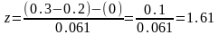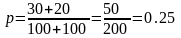 где 1 относится к популяции мужчин-студентов колледжей, а 2 – к популяции мужчин, которые студентами не являются. Выборочные доли p1=0.3 и p2 =0.2, поэтому n1p1=30, n1q1=70, n2p2=20, n2q2=80. Статистикой проверки является: