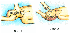 у пострадавших с полностью релаксированными жевательными мышцами. Большой палец левой руки реаниматор вводит в рот пострадавшему и кончиком пальца нажимает на корень языка. Остальные пальцы захватывают нижнюю челюсть, подбородок и поднимают ее с языком вверх. Рот открывается (рис. 1).