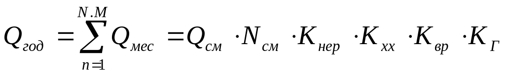 Qмес = Qсут · Кнер · Ккл · Кпр · Кг · Nс (14.11)