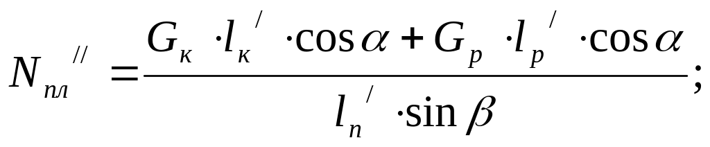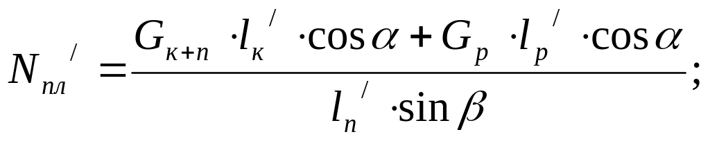 Усилие в подъемном канате Nпл (Н) в любом положении ковша относительно забоя определяется из уравнения моментов сил относительно оси напорного вала.