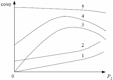 12. Какая рабочая характеристика асинхронного двигателя соответствует зависимости потребляемого тока I от мощности P2 на валу?