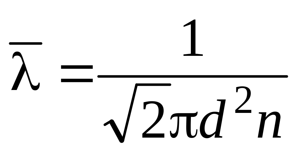 Средняя длина свободного пробега молекул (расстояние, проходимое молекулой газа между двумя последовательными столкновениями)