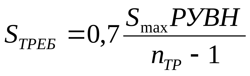 Трансформаторы на подстанции выбираются с такой номинальной мощностью, чтобы в случае выхода из работы одного из них оставшихся могли бы перекрыть нагрузку подстанции с учетом аварийного перегруза 40 %. Требуема мощность трансформатора рассчитывается по формуле: