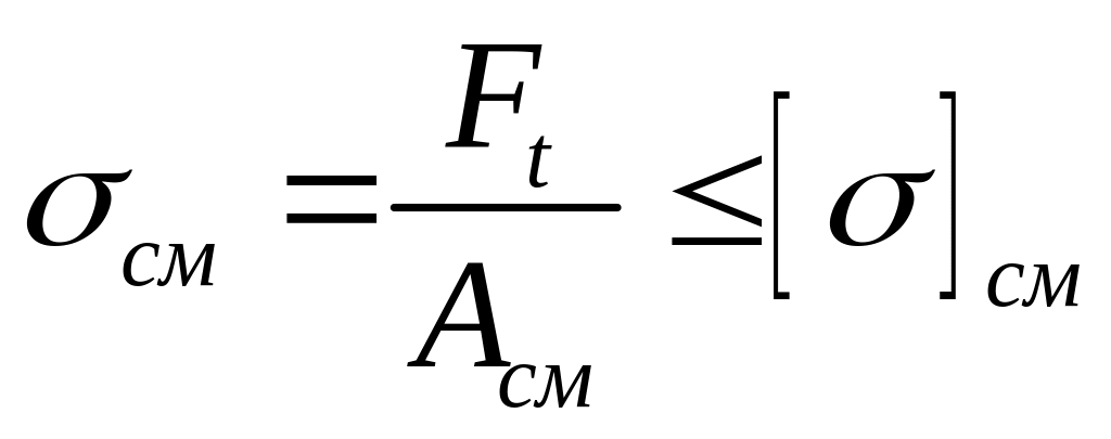 Площадь смятия , мм2 определяется по формуле: