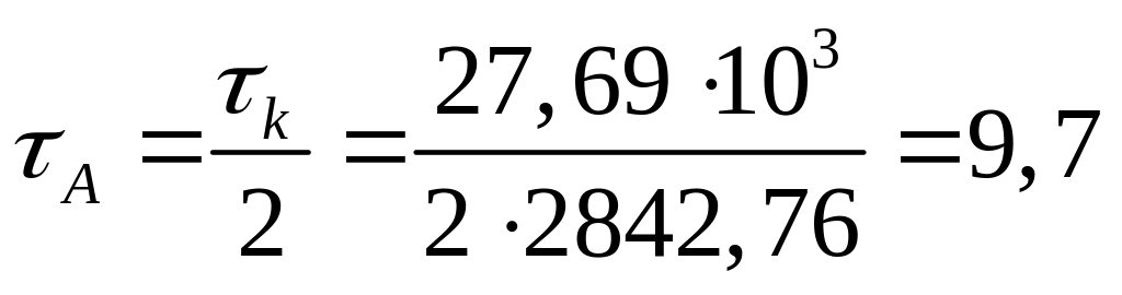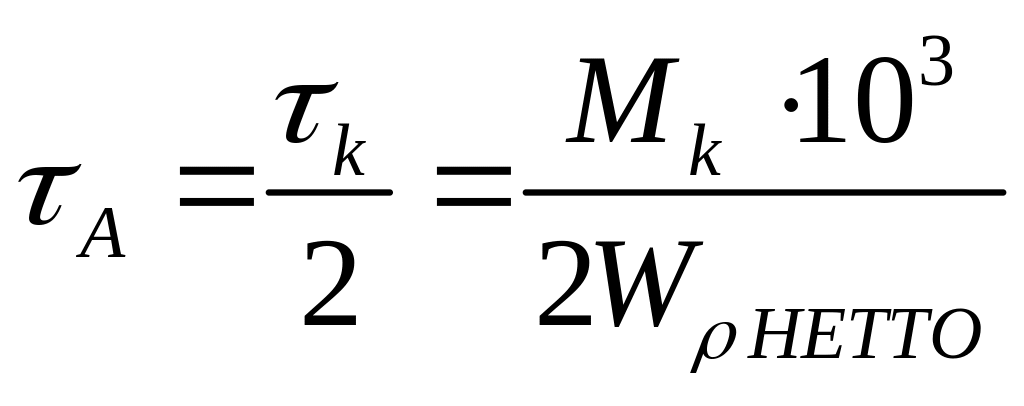 Касательные напряжения изменяются по отнулевому циклу, при котором амплитуда цикла равна половине расчетных напряжений кручения :