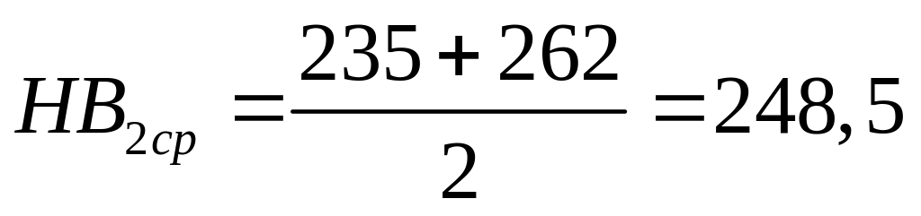 Средняя твёрдость зубьев колеса для стали 40Х найдём по формуле: