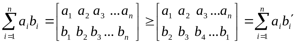Розглянемо дві одномонотонні послідовності і . Для цих послідовностей запишемо n перерозміщувальних нерівностей :