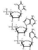 Le composant glucidique – est le ribose, car le groupe hydroxylé est présenté dans la position 2’. Conséquemment, c’est le fragment de l’ARN. C’est la structure primaire (la séquence des nucléotides dans la chaîne de l’acide nucléique). Mais le nucléotide supérieur contient la base hétérocyclique la thymine, mais pas l’uracile (il y a le groupe −CH3). Conséquemment, il y a une faute dans la présentation du fragment de l’ARN.