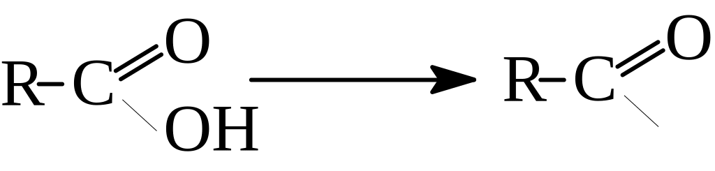 Мурашина кислота міститься у мурашках (опік після укусу). Масляна - має запах старого масла. Капронова - міститься у козячому жирі (лат.caper - коза) тощо. Якщо забрати від молекули карбонової кислоти НО-групу, отримаємо залишок, який називається ацилом (ацильною групою)